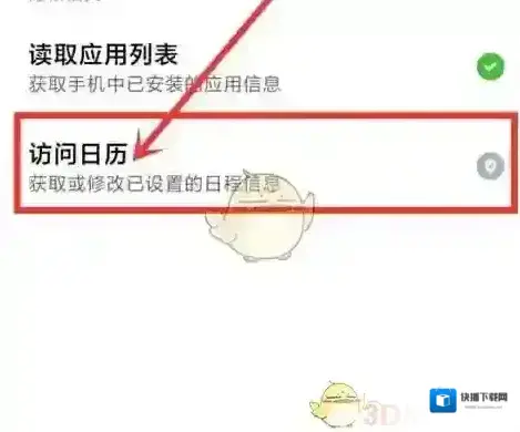 4、在权限设置页点击“访问日历”设置项。