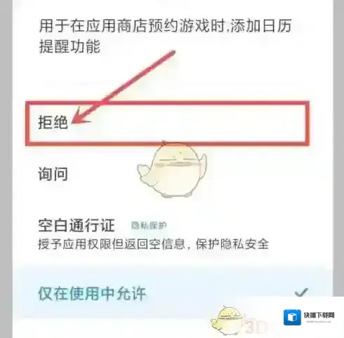 5、选择“拒绝”,即可关闭日历权限。