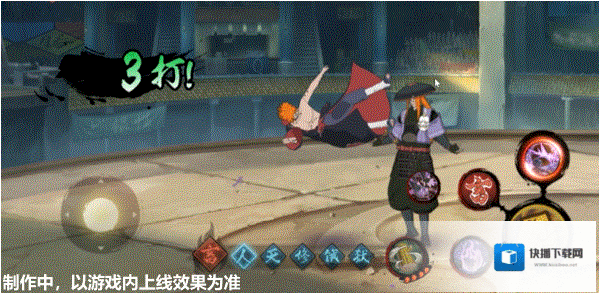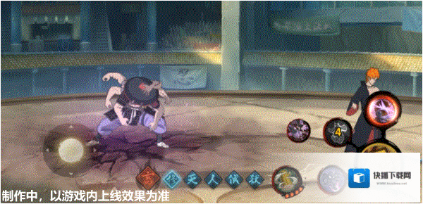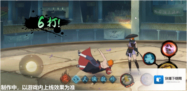 连携攻击当主控道为人间道,若使用一技能命中对手,修罗道会在技能即将结束时,抓住对手抱摔。