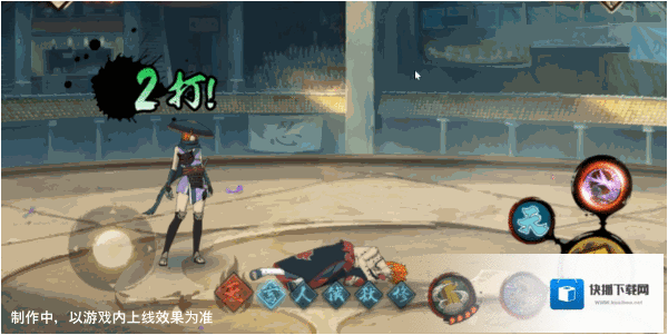 **道**道普攻共3A,1A直踢腿,2A上踢腿跃起,3A下劈腿砸向地面。普攻可在y轴小幅度移动。