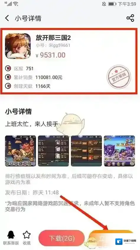 4、进入游戏小号界面,可根据需求选择“性价比高”、“区服”、“创建天数”、“价格区间”等条件进行排序筛选,这里以“第一个”为例,