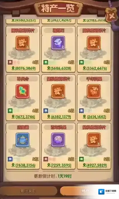 城池特产:每隔一小时给所占领阵营军功 0的成员累计一次特产,特产可以在城池特产-特产一览中查看,每两天会刷新一次。
