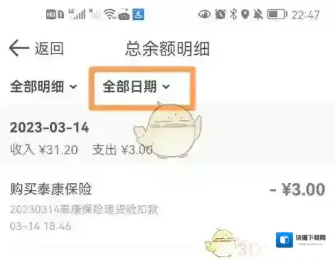 5、进入“总余额明细”界面,可以查看到每日的收入、支出记录。