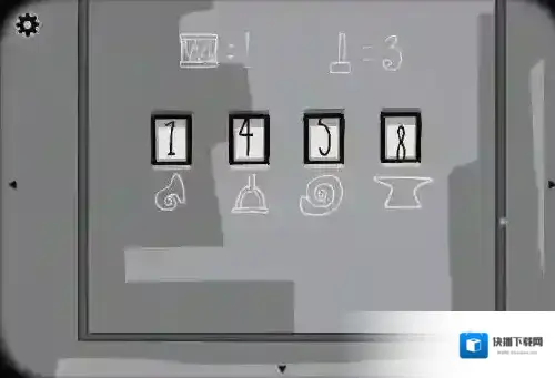 看到门后,点击灰色的那扇。根据门上方给出两个物品的提示,用天平称出其余物品代表的数字。[输入1458]开门后进入房间