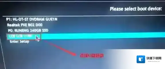 5、重启按ESC选择识别到U盘启动项回车就可以U盘启动了;