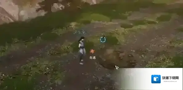 3、我们开启望气术根据风的指引,我们是可以看到前面有一个小土堆,我们需要掀开小土堆,掀开之后我们就可以完成奇遇任务落霞飞鹰了;