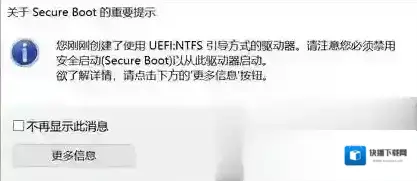 7、所需时间视U盘写入速度而定,会弹出“关于Secure Boot的重要提示”,可以直接点“关闭”,至此,rufus制作usb启动盘过程结束。