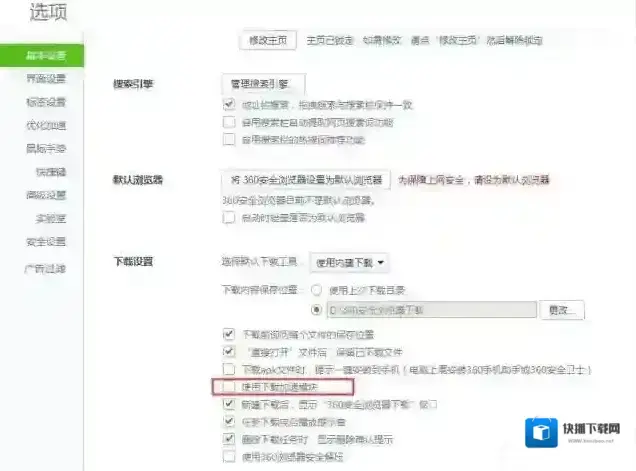 2、在基本设置中的下载设置中,把“使用加速模块”选项取消掉。