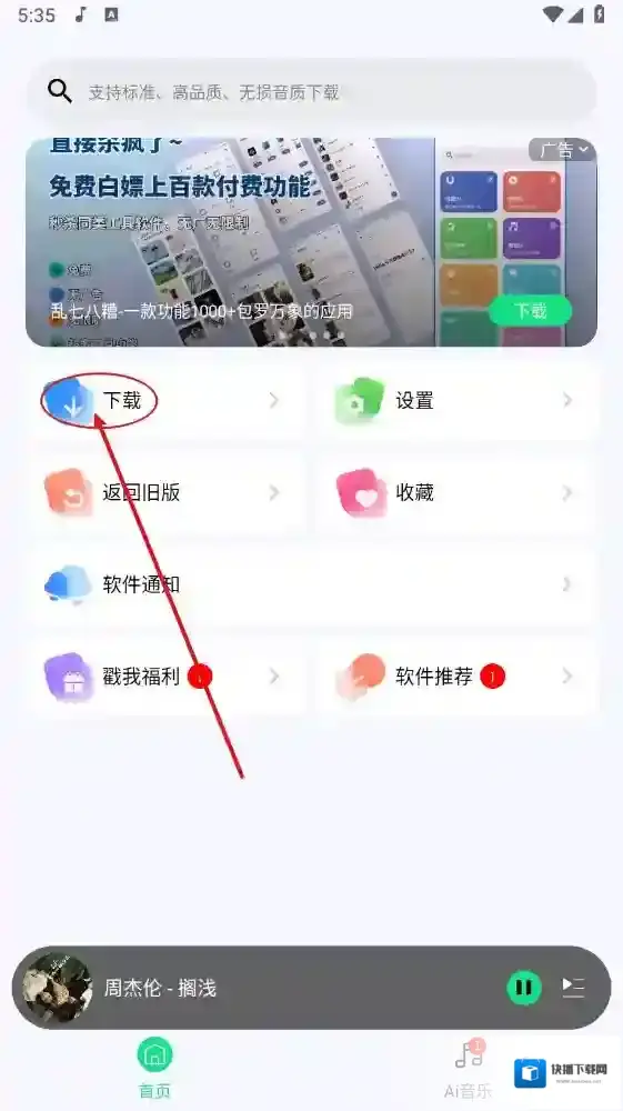 6、返回首页,点击”下载”进入即可查看下载的音乐了。