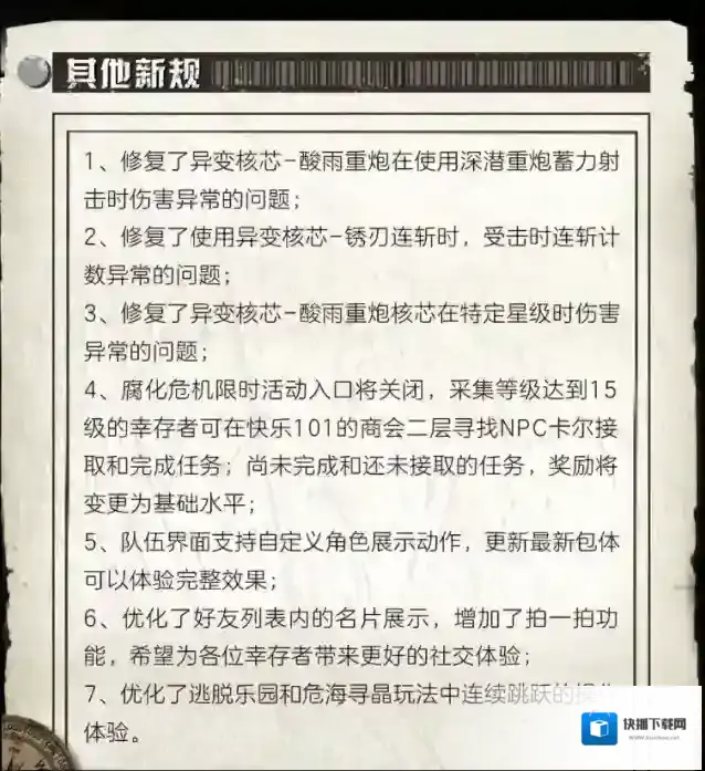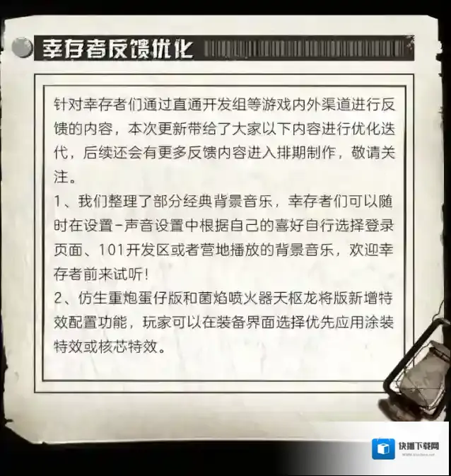 亲爱的幸存者欢迎收听101***我是播音员西奥德罗为了更好的明天接下来我将为您播报本周联盟颁布的一系列新规