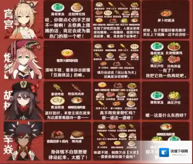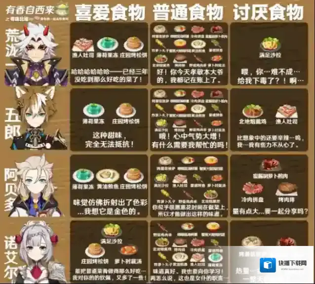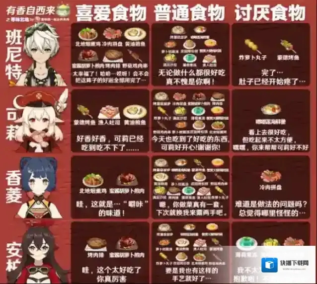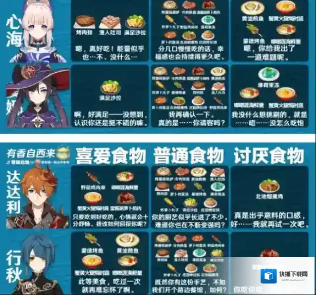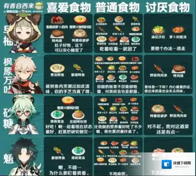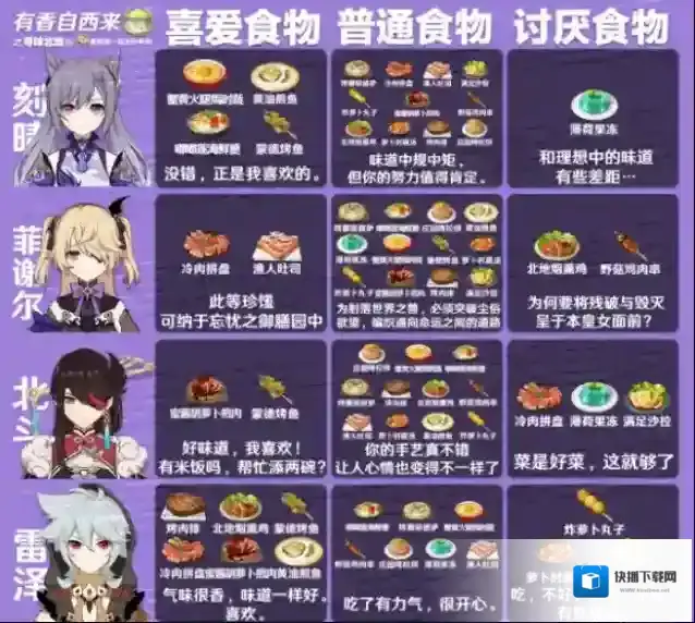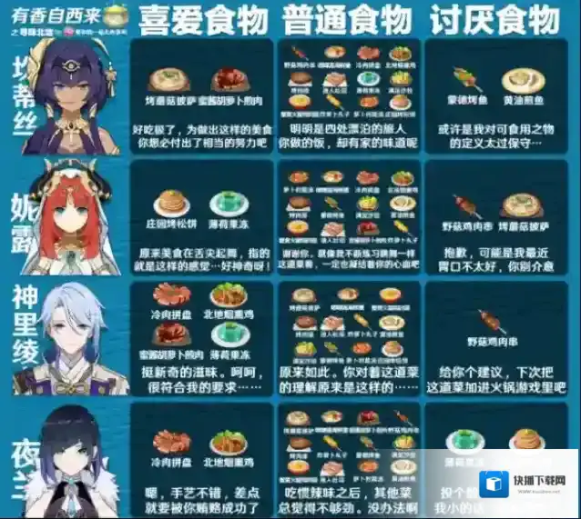 原神3.5版本活动有香自西来全角色料理喜好食物表