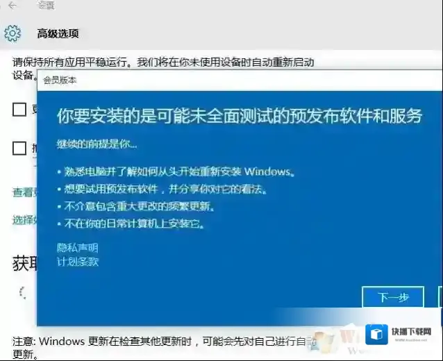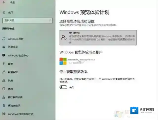 10、之后进入windows预览体验计划。已经可以正常开始更新。