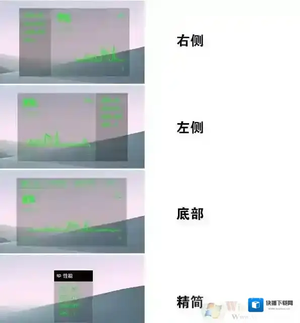 除了默认样式外,Xbox Game Bar(游戏栏)还提供了其他几组外观。同时你也可以点击快捷按钮,隐藏曲线图