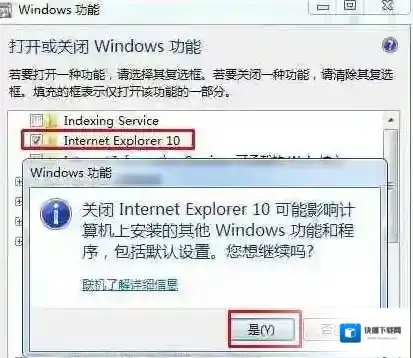 4、取消勾选internet explorer 8,9或10,然后确定;