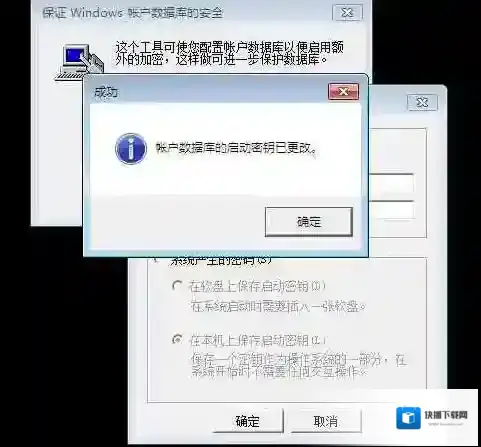 5.在出现的“账户数据库的启动密钥已更改”成功提示窗口中点击“确定”,如图5所示: