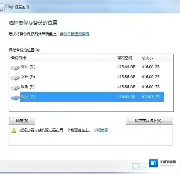 选择一个相对较大的存储盘,保证有足够的空间备份系统,然后下一步