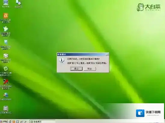 6、恢复完成,重启系统,开始下一个阶段的安装,一般都是自动的了。
