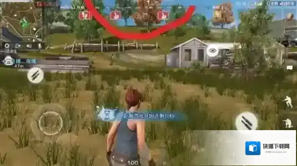 屏幕上方游标尺上有个小三角,小三角是固定的,表示你的正前方。如果人物屏幕向左划或右划,小三角的下方数字代表方向,回左右移动。
