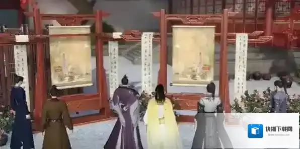 4、到达宴会落座之后,在此欣赏牡丹的画,宴会开始之后,王端就开始题词,我们需要把王端写的诗读出来并且与在坐的各位进行对话。