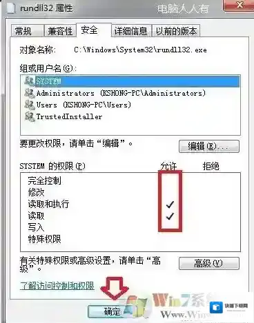 8、还不行,右键点击文件→属性→安全→将当前的账号涵盖进去→允许→确定。