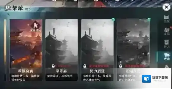 江湖风云志可以说是势力战,各个势力下的帮派与其他势力的帮派进行混战,可获得帮贡、秘籍、锻造台等其他稀有材料,最主要的是可大幅度增加帮派势力声望,以及称呼和势力关系贡献值,和尊你为御上尊、掌印者、帐中行、座上宾、门外客等,会给与你一些物质奖励。