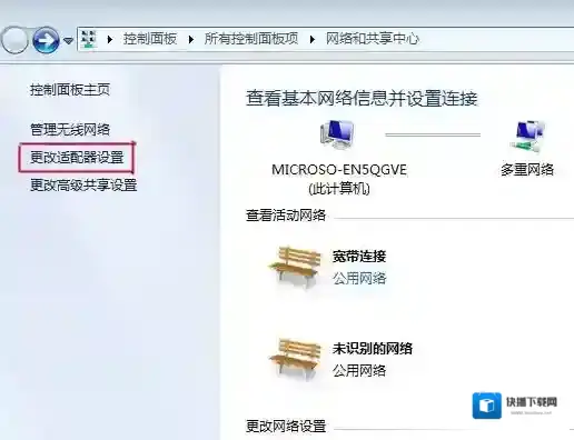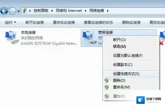 最后,如果想把宽带连接图标放在桌面上,那么只需依次点击控制面板-网络和共享中心-更改适配器设置,然后右键宽带连接-创建快捷方式就行了。