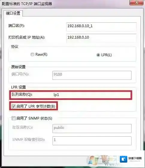 协议选择LPR,队列名称为lp1,并勾选启用了LPR字节计数后点击确定。