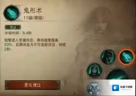 技能4鬼形术,前期单人刷本推荐使用,可以保命与怪物拉开距离