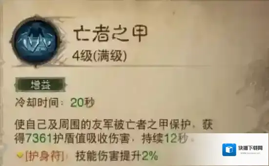 衣服临别赠礼:亡者之甲现在使自己和周围队友获得X数层亡者之甲,每层可以完全抵挡一次伤害