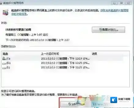 对系统的磁盘碎片进行清理,方法是依次打开“开始 –所有程序–附件–系统工具–磁盘碎片整理程序”,选择C盘,然后点击“分析”,之后开始碎片整理。