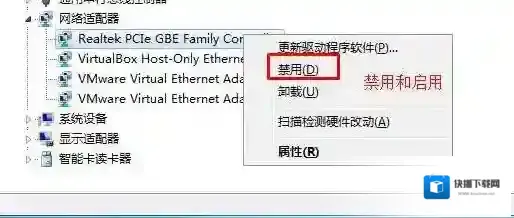 3、如果设备管理器里没有未安装驱动的设备,又没有网卡,那么可以判断网卡已经损坏;a、拿到维修站更换有线网卡;b、临时使用USB网卡替代有线网卡;c、只使用无线网卡。