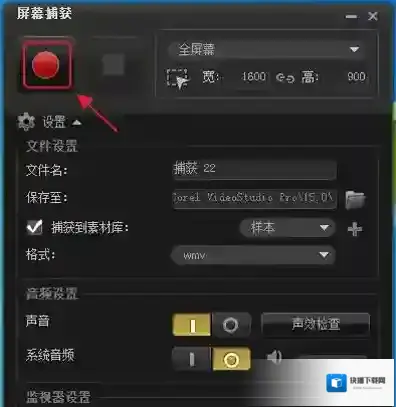 会声绘影屏幕捕捉3、在屏幕捕获功能界面,如图中所示,点击“设置”,打开屏幕捕获设置界面;