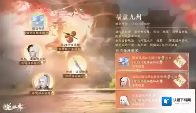 1月26更新后开启“福盈九州”抽奖活动,1月26日-1月28日每服抽取该服的一号福星,1月29日-2月4日每服抽取该服的二号福星。