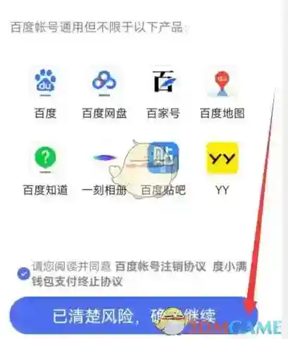 5、进入页面后,勾选协议后,点击“已清楚风险,确定继续”即可进行注销,参考如图。