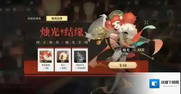 说明:版本更新后,移除商肆中的烛光礼包,在主界面通过结缘礼包入口,68元可购买烛光结缘结缘礼包