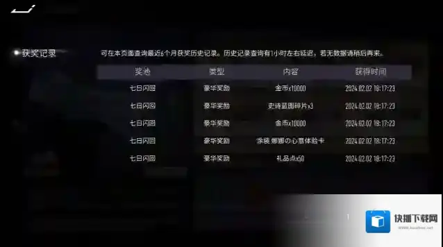 抽奖进度继承:车手们在王牌补给中未获取传说车辆的累计抽取次数将会被继承延续,不会随着车辆概率up的更替而过期。车手们也可以随时前往全部奖励-获奖记录界面查询近期抽奖记录。随时随地放心抽取,人人都可以免费提车!