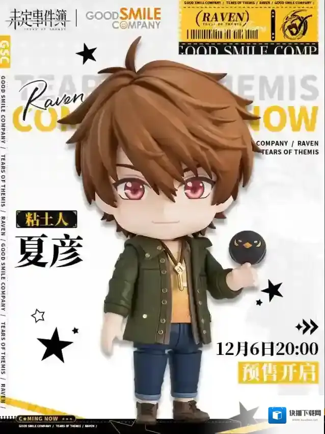 同时,GSC粘土人手办 夏彦款也将于12月6日在《未定事件簿》官方天猫商城、米游社未名商城和goodsmile官方店铺正式开启预售。粘土人 夏彦款共包含3款表情配件、3款物品配件、4款肘部配件和8款手部配件,并随手办附赠游戏内逸趣·夏彦限定名片,预售期间购入将额外赠送特典亚克力挂件·夏彦款。