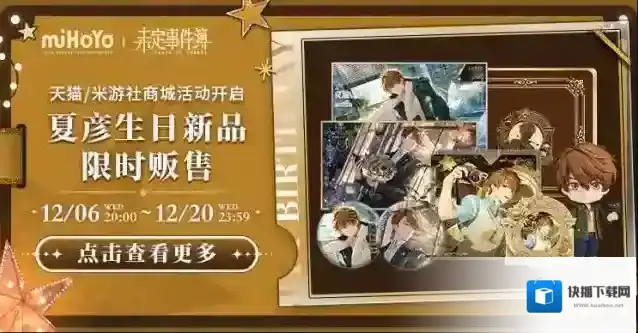 12月6日起,《未定事件簿》官方天猫商城及米游社未名商城开启夏彦生日活动,多样精美周边上新,多重福利活动限时开启。