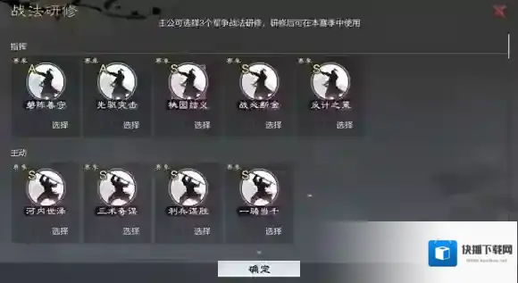 军争模式赛季中将无法使用常规赛季已经获得的战法,且赛季内战法不可再通过拆解武将获得。军争模式赛季将新增战法研修功能,主公可选择指挥、主动、被动、追击其中一个战法类别进行研修,研修后可获得该类别下任一B级及以上级别的赛季战法。战法研修获得的战法无需研究即可直接使用,且通过战法研修不会获得重复战法。每次研修消耗5000铜钱。同样的,通过战法研修获得的战法均为赛季战法,转入备战区时将清除。