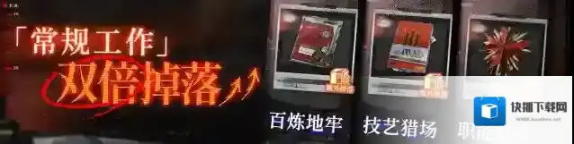 活动期间参与「常规工作」中的「职能要塞」,「百炼地牢」,「技艺猎场」任一素材关卡,掉落的职能勋章、训练企划和技能教材数量翻倍。