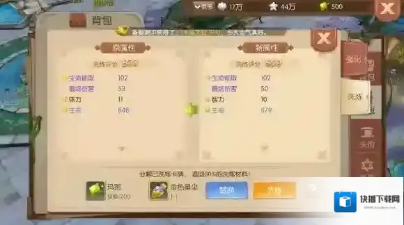 洗练后的属性如果想要替换,就点击替换,不想替换的话就继续点击洗练。