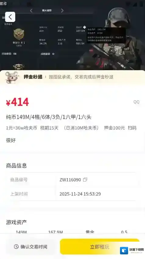 4、选择自己喜欢的账号进入详情页,点击“立即租玩”即可。