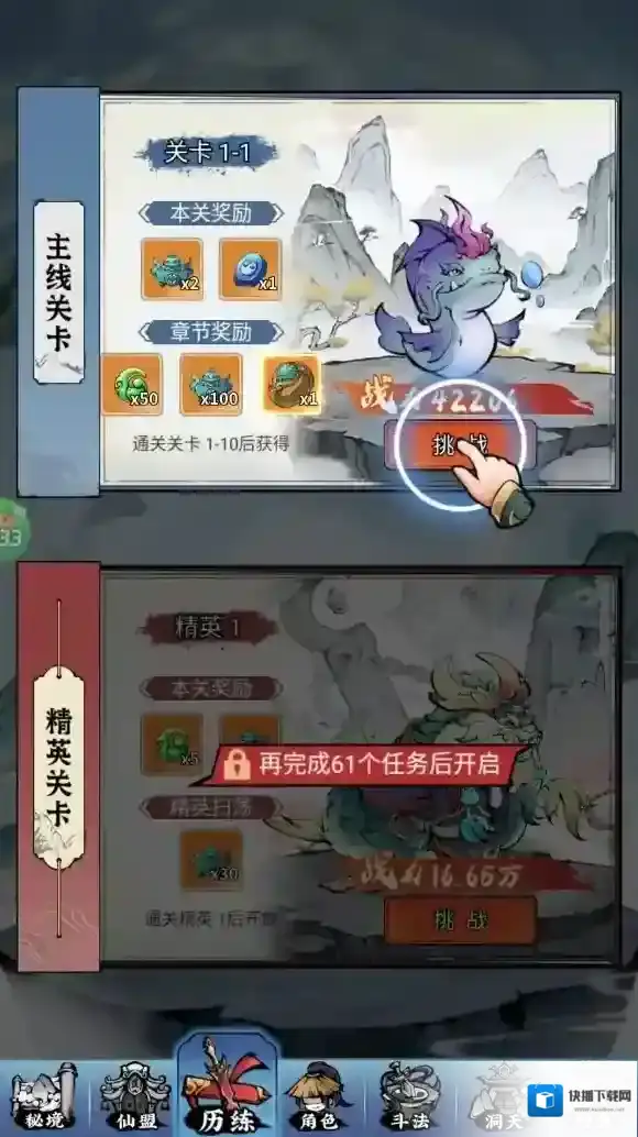 7、完成一定任务后,点击下方历练就可以开始历练了。