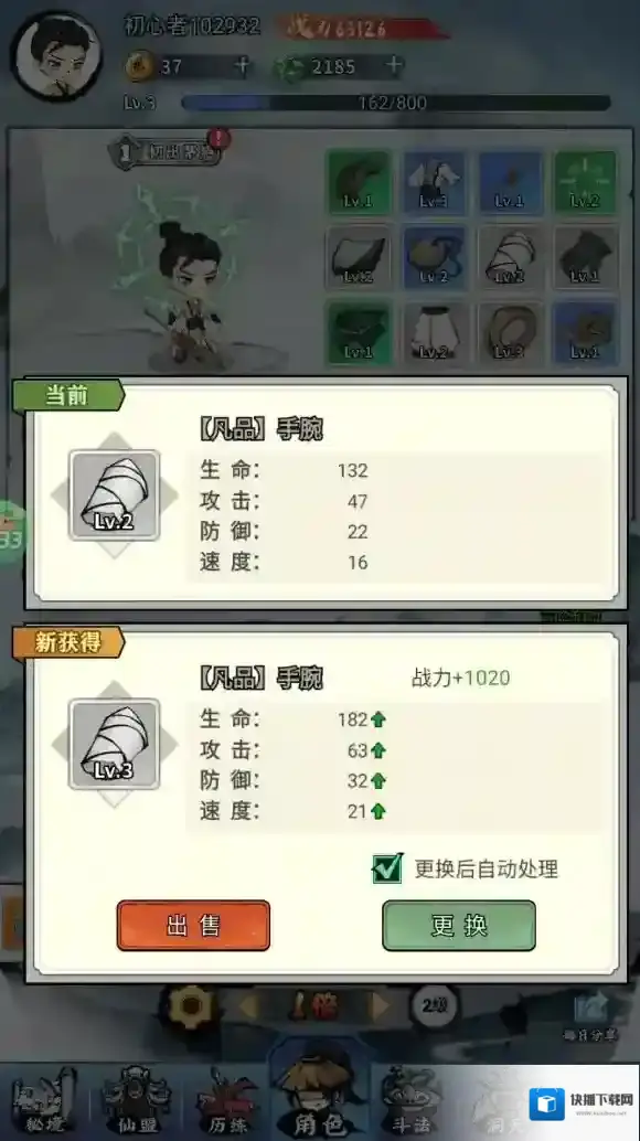 2、打造出来的装备好的直接换上,不好的直接出售。