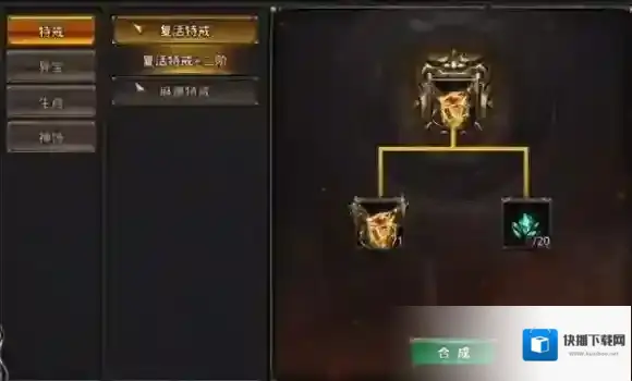 二、合成系统说明:合成系统可从游戏右下方合成入口进入。合成系统初始只有四部分,分别是特戒、异宝、生肖、神饰。