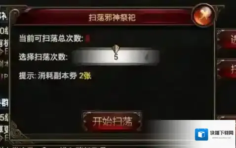 如图所示:副本界面有个扫荡按钮,选择需要完成的次数,点击之后,即可完成副本,领取经验和奖励,提示一瞎小伙伴们注意把背囊的物品清空一下,不然就无法完成扫荡。