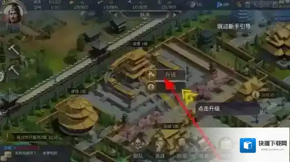 2、进入游戏后,对城堡进行升级,点击城堡上的升级按钮,提升城堡等级,以此解锁更多功能与资源,增强自身实力。