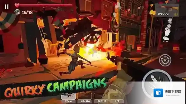 4、卡通化视觉表现,以轻松画风呈现紧张刺激的僵尸题材,降低恐怖元素适合更多玩家。