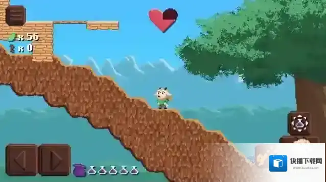 3、游戏左边控制角色的前进,右边是跳跃、使用绳索和投出药瓶的按钮。