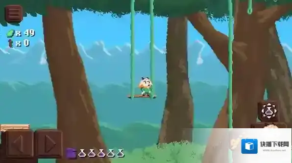 4、在前进过程中会遇到一些在空中的点,跳起来使用绳索就可以在这些地方荡来荡去跨越障碍。